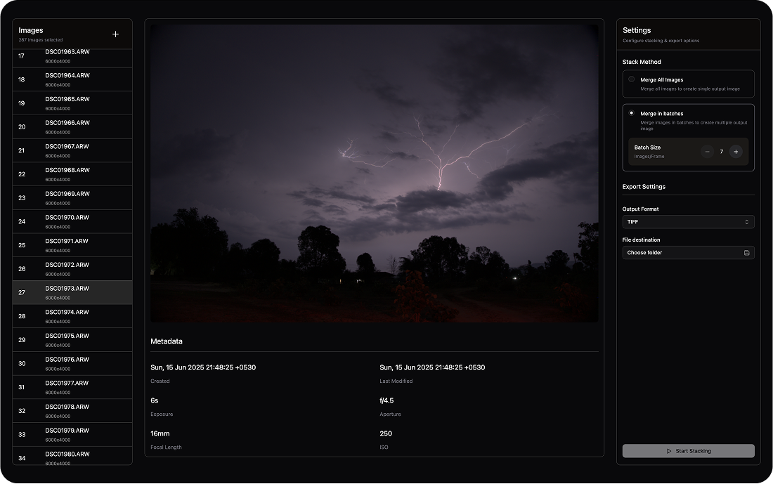 Create stunning light paintings. Without limits. Light Painter is designed for one purpose: to stack hundreds of RAW images with incredible speed and efficiency.